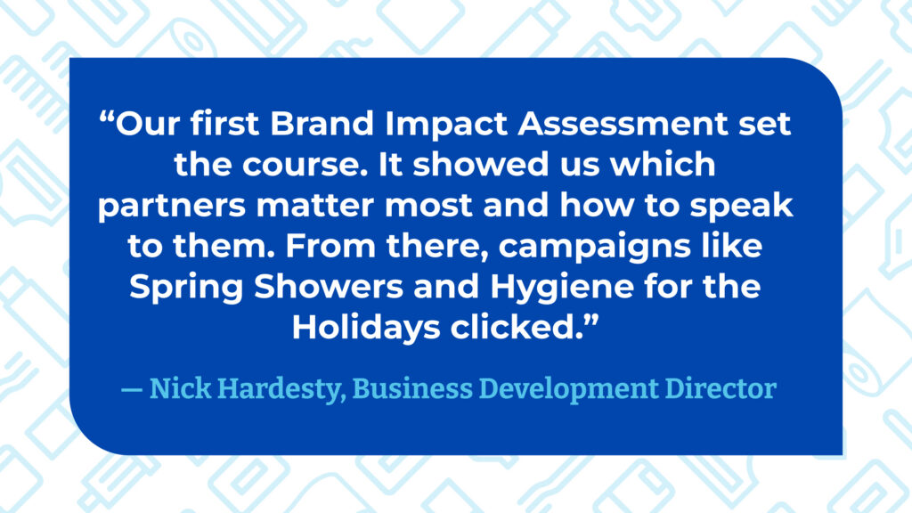 “Our Brand Impact Assessment gave us a real roadmap. We identified the partners that matter, sharpened our brand and launched campaigns like Spring Showers with confidence.” — Nick Hardesty, Business Development Director, Giving the Basics